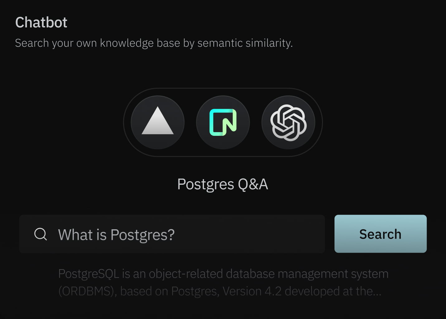 • Chatbot: Search your own knowledge base by semantic similarity